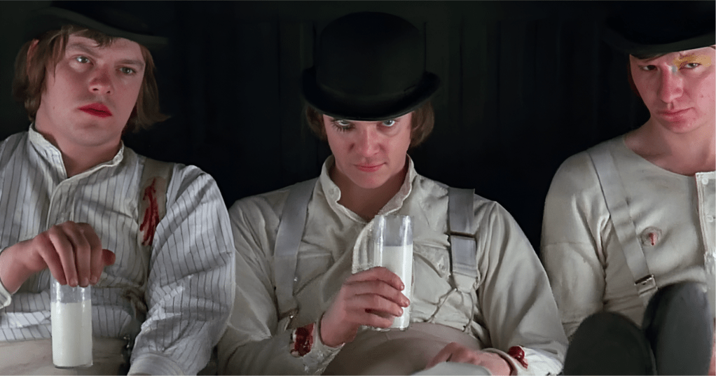 Tarantino isn’t the first director to use milk to unnerve his audience. Stanley Kubrick employed a similar technique in his dystopian classic A Clockwork Orange. The film’s violent teenage protagonist and his gang frequent the Korova Milk Bar, where they drink drug-laced milk to prepare for their brutal crime sprees. The image of these young thugs downing milk creates a disturbing contrast between youthful innocence and extreme violence.