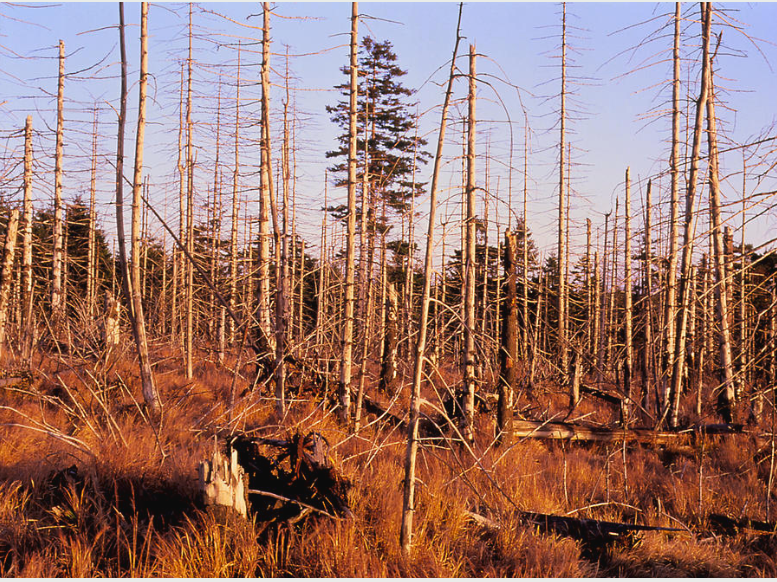 Photo Via Simon Fraser. A forest devastated by a downpour of acid rain.